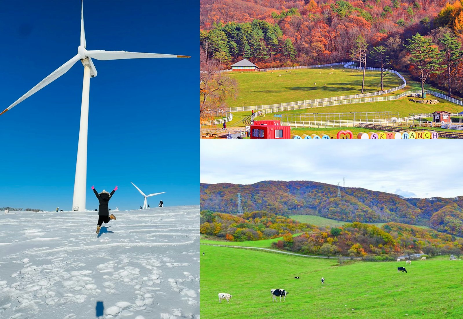 大关岭三养牧场、天空牧场、雪岳山缆车、江陵空中自行车、鬼怪取景拍摄地、悬崖咖啡厅、雪景温泉和咖啡厅、轮船酒店、吃红蟹